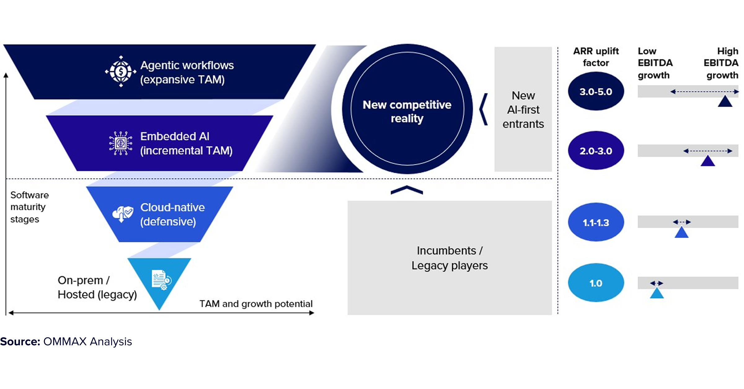 At OMMAX, our engagements with software executives and investors globally reveal that the biggest disruption isn’t AI as a feature. It is AI as operational authority. The distinction between incremental enhancement and structural redesign is becoming decisive. Companies that treat AI as an add-on risk marginal gains. Companies that redesign their architecture, workflows, and monetization logic around AI redefine their competitive position.